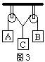 8.如图3所示.A,B质量相等,均为m,C质量为M(M>m),C对A,B是对称的。