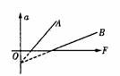 质量为m1的物体放在A地的地面上,用竖直向上的力F拉物体,物体在竖直方向运动时产生的加速度与拉力的关系如图中A线所示;质量为m2的物体在B地地面上做类似的实验,得到加速度与拉力关系如图中B线所示,A、B两线的延长线交Oa轴于同一点,设A、B两地的重力加速度分别为g1和g2,由图可知 ( )