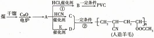 9.(海州高级中学2009届高三化学第三次综合测试)(12分)近年来,由于石油价格不断上涨,以煤为原料制备一些化工产品的前景又被看好。下图是以煤为原料生产聚氯乙烯(PVC)和人造羊毛的合成路线。