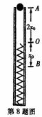 9、如图所示,在一直立的光滑管内放置一轻质弹簧,上端O点与管口A的距离为2X0,一质量为m的小球从管口由静止下落,将弹簧压缩至最低点B,压缩量为x0,不计空气阻力,则
