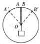 C如图所示,两根相同的橡皮绳OA、OB,开始时夹角为0°,在O点处打结吊一重为50N的物体,这时结点O刚好位于圆心.现将两橡皮绳的上端由A、B分别沿圆周向两边移动至A′、B′,使∠AOA′=∠BOB′=60°.要使结点仍在圆心处,则此时结点处应挂多重的物体?