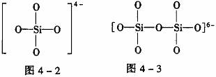 [解析] 由图4-1可以看出:每个硅原子周围结合4个氧原子,同时每个氧原子跟2个硅原子结合,因此二氧化硅晶体(石英)是由氧、硅原子按原子个数1∶2组成的立体空间网状结构的原子晶体。Si2O76-只有硅氧键,根据SiO44-的结构图可得Si2O76-的结构图见图4-3。