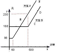 [解]设通话x分钟时,方案A,B的通话费分别为