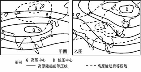 (2)青藏高原隆起前N地的风向为 ▲ ,高原隆起后N地的风向为 ▲ 。