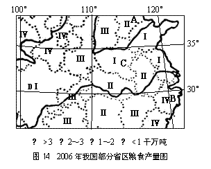 (3)比较图17中A、B两省全年土地生产潜力的差异,并分析原因。比较A、B两省粮食生产的差异,并分析原因。 ▲