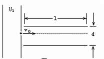 13.((15分)如图所示的装置,U1是加速电压,紧靠其右侧的是两块彼此平行的水平金属板,板长为l,两板间距离为d。一个质量为m,带电量为-q的质点,经加速电压加速后沿两金属板中心线以速度v0水平射入两板中。若在两水平金属板间加一电压U2,当上板为正时,带电质点恰能沿两板中心线射出;当下板为正时,带电质点则射到下板上距板的左端l/4处,为使带电质点经u1加速后沿中心线射入两金属板,并能够从两金属之间射出,问:两水平金属板间所加电压应满足什么条件,及电压值的范围。