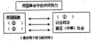 14.陈衡哲在《西洋史》中谈及英国资产阶级革命时说:“这个革命兼有宗教、政治及社会的性质。”并用如下图表加以说明。下图表中空缺部分应该是 ( )