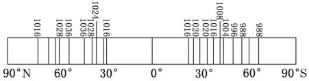 读“90°E附近海平面气压图(单位:hPa)”,回答13-14题。