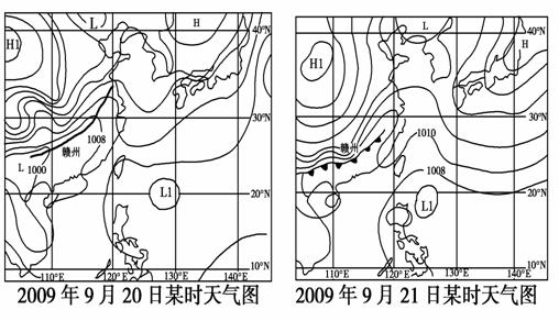 (1) 分别说明20、21日赣州的天气状况并分析产生变化的原因。(9分)