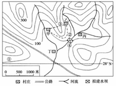 (3)如果在该地区建设小城镇,甲、乙、丙、丁四个村庄发展条件最有利的是 村,