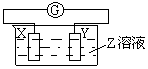 10.X、Y两根金属棒插入Z溶液中构成如下图的装置,实验中电流表指针发