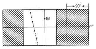 读下面的经纬线示意图,图中虚线是晨昏线,阴影与非阴影部分代表两个不同日期,据此完成5--6题。