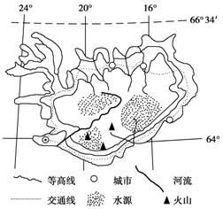 下图中岛国所在岛屿属大洋海岭露出水面的部分,岛上1/8面积为冰川所覆盖。读图回答27-28题。