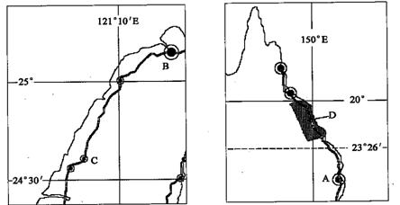 (3)该日下列城市中正午太阳高度最大的是 。(填字母)