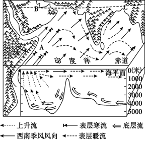 36、读右下图“印度洋西北部海域上升流的形成示意图”,回答:(8分)