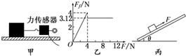 (16分)在研究摩擦力特点的实验中,将木块放在水平长木板上,如图9甲所示,用力沿水平方向拉木块,拉力从0开始逐渐增大.分别用力传感器采集拉力和木块受到的摩擦力,并用计算机绘制出摩擦力Ff随拉力F变化的图象,如图乙所示.已知木块质量为0.78