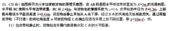 (3)试写出货物包在车厢内的落地点到C点的水平距离S随皮带轮角速度ω变化关系,并画出S-ω图象.(设皮带轮顺时方针方向转动时,角速度ω取正值,水平距离向右取正值)