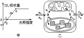 6.右图甲示某种植物光合作用强度与光照强度的关系,图乙示该植物叶肉细胞的部分结构(图中M和N代表两种气体),据图判断,下列说法正确的是(注:不考虑无氧呼吸)