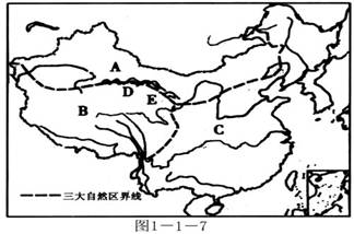 读“中国三大自然区图1-1-7”,回答19-23题。