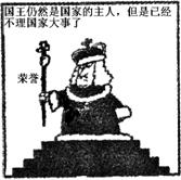 材料二:如右图所示,漫画所反映的是西方资本主义国家所采用的何种政体形式,该形式首先是通过哪一个重要文献加以确立的? (2分)