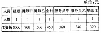 7、某餐厅共有7名员工,所有员工的工资情况如下表所示: