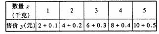 14、某下岗职工购进一批苹果,到集留市场零售,已知卖出的苹果数量x与售价y的关系如下表: