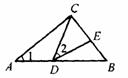 如图,△ABC中,D是AB上一点,AD:DB=3:4,E是BC上一点。如果DB=DC,∠1=∠2,那么S△ADC:S△DEB= 。