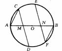 2。如图,过⊙O的直径AB上两点M,N,分别作弦CD,EF,