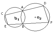 ⊙O1交于点C,与⊙O2交于点D,经过点B的直线EF与⊙O1交于点E,与⊙O2交于点F。