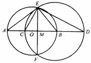 如图,已知⊙O与⊙B相交于E,F两点,点B在⊙O上,OB所在直线与⊙O相交于另一点A,与⊙B相交于C、D,EF与AB相交于M。