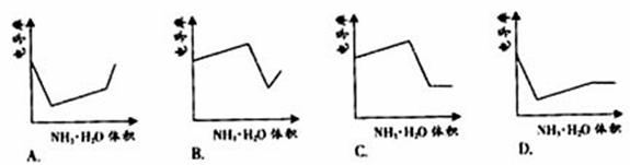 9、电导率是衡量电解质溶液导电能力大小的物理量,根据溶液电导率变化可以确定滴定反应的终应。右图是KOH溶液分别滴定HCl溶液和CH3COOH溶液的滴定曲线示意图。下列示意图中,能正确表示用NH3·H2O溶液滴定HCl和CH3COOH混合溶液的滴定曲线的是