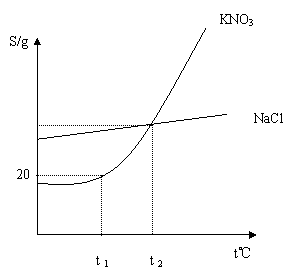 D.温度高于t2 0C时, KNO3的溶解度大于NaCl 的溶解度