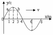 如图所示,一列简谐波向右以8.0m/s的速度传播,某一时刻沿波的传播方向上有a、b两质点,位移大小相等,方向相同。以下说法中正确的是 ( )
