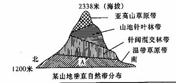 下图表示“我国某主要地形区中一座‘东-西’走向山脉的自然带垂直分布示意图”,下表为该地形区中某城市年内各月气温、降水统计表。读图表并结合所学知识回答20_21题