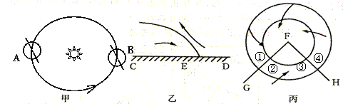 (2)若将乙图锋面移到丙图中,相当于哪条地面锋线 ( GF或HF ),受其锋面影响①②③④四地中此时有降水的是 。 (2分)
