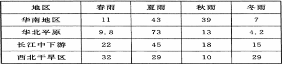 (3)ABC是我国三个干旱严重地区,但是三地区干旱形成的季节及原因不同,试分析说明B地区干旱形成的季节及原因 。(2分)