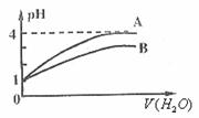 [例4] 常温下的两种一元酸溶液A和B,分别加水1000倍稀释,其pH与所加水的体积变化如下图所示,则下列结论中正确的是