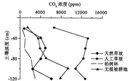 读某地区不同植被下土壤空气中CO2浓度示意图,完成9-11题。