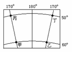 根据右图中甲、乙、丙、丁四地的经纬度位置,判断27-28题。