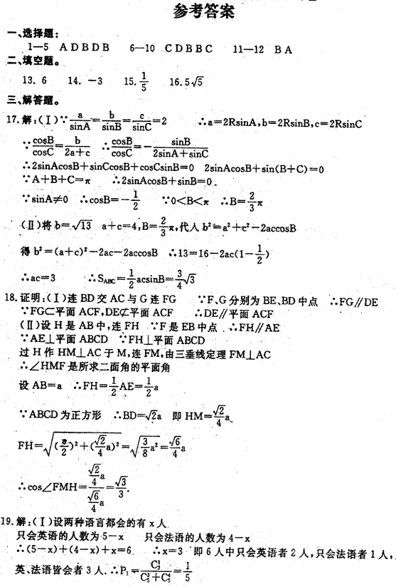 (Ⅱ)求二面角B-AC-F的余弦值.