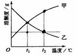18.甲、乙的溶解度曲线如图,将t2℃甲、乙的饱和溶液分别降温到t1℃。下列说法一定正确的是