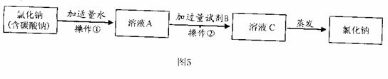 17.(5分)医院救治病人急需一批生理盐水,制药厂积极支援,用含有少量碳酸钠的氯化钠为原料生产纯净的氯化钠,再用其配制生理盐水。某化学学习小组运用所学知识,在实验室设计了如图5的氯化钠的生产流程。