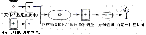 A.图示“白菜-甘蓝”植株不能结子 B.愈伤组织有叶绿体,代谢类型是自养需氧型