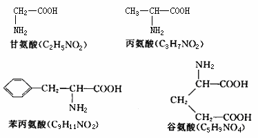 (1)上述四种氨基酸的结构通式是 ;丙氨酸的R基是 。