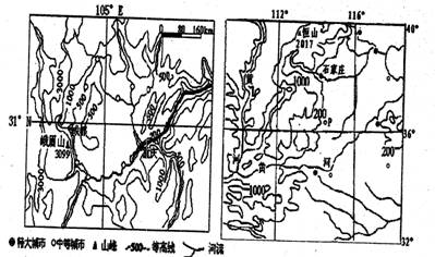 (1)成都和石家庄处在相同的地貌类型上,据图中信息分析说明该地貌类型名称并简要描述其形成过程。(8分)