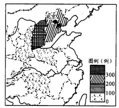 (1)根据我国部分省区“非典型肺炎”累计临床诊断病例通报表中的数据,在我国部分省区图的图例空框内,设计区分各病例数值段的图例符号,并在图上山西、湖南两省范围内画出相应的图例符号。