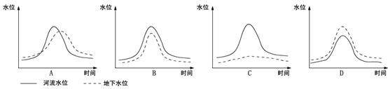 9.下列四幅图中能正确反映河水位与地下水位关系的是
