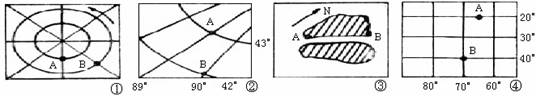 1.在图1中,A在B的方位排列顺序正确的是( )