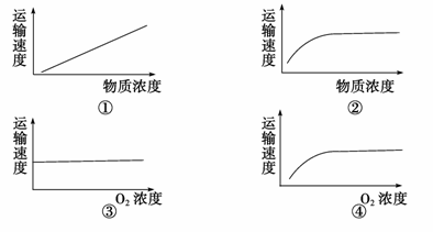 在研究具体的物质X时,发现与曲线②和④相符,试问:细胞膜运输物质X的方式是 ( )