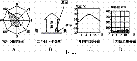 31.下列统计图或示意图(图13)反映的地理现象,与②地区相符的是